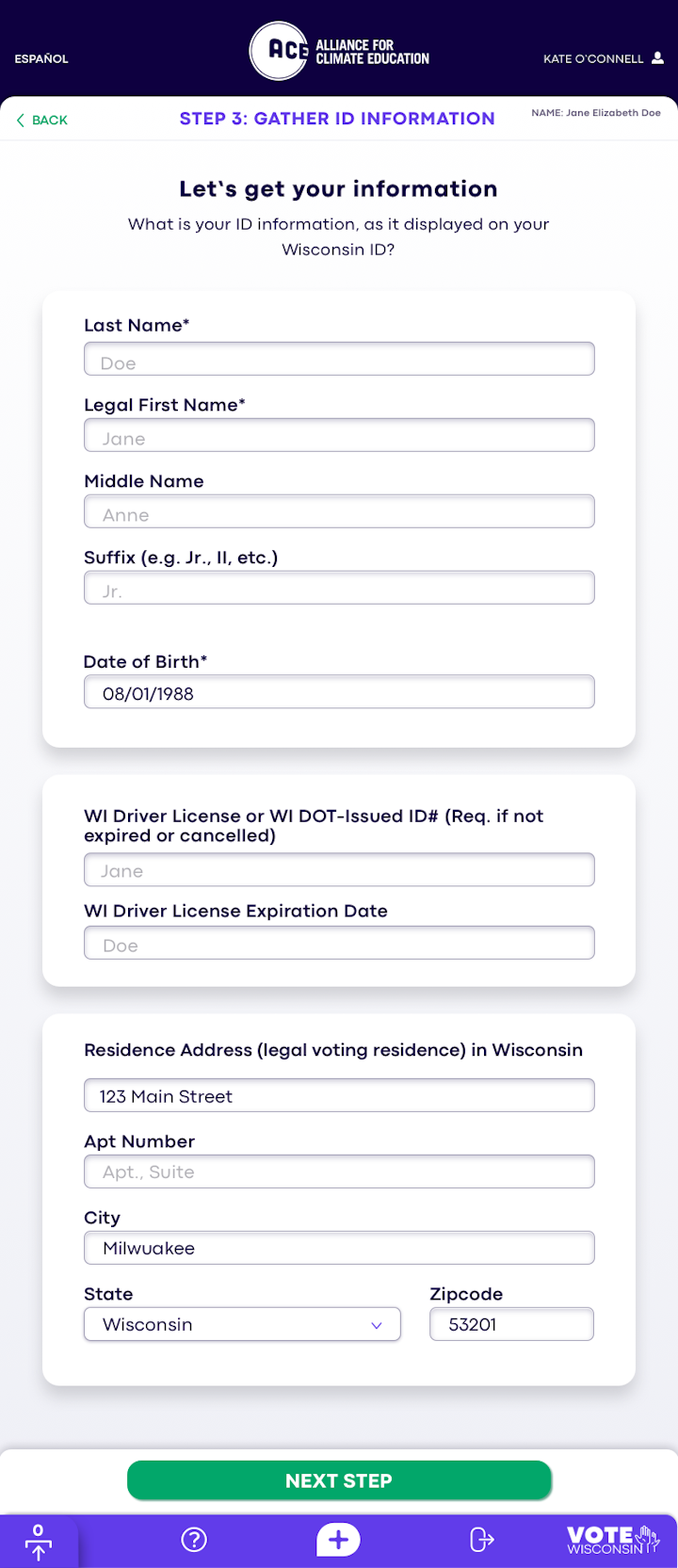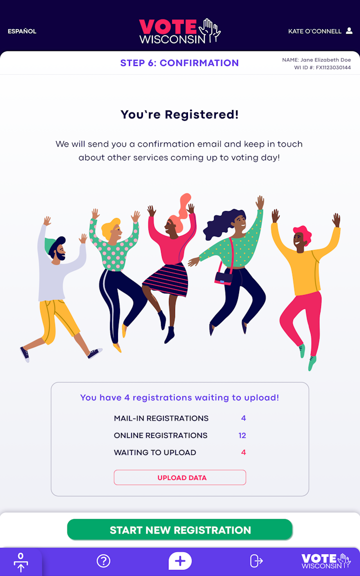 Persist spearheaded an intensive UX phase for both the app and registration website, to ensure all registration situations our canvassers may come across were accounted for in the app. We talked to stakeholders, canvassers, partner organizations, and general Wisconsinites, to create user data flows which allowed for registrations and follow-up from our communications team to ensure newly-registered voters were reminded to vote.