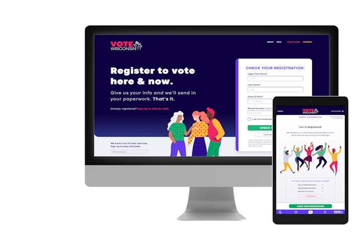 We created an incredibly easy interface for a complex platform, giving people the ability to register either online or through the app. We made the app available not just to canvassers and partner organizations, but to anyone who wanted to help family, friends, and members of churches or the community through the voter registration process.